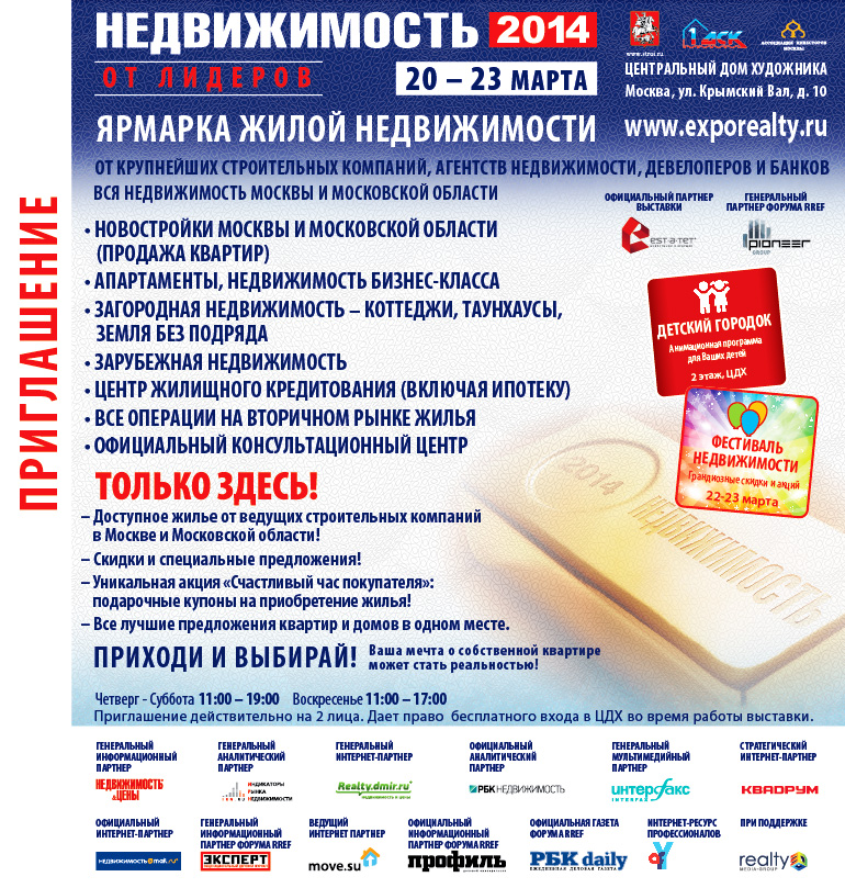 «Эталон-Инвест» примет участие в 30-ой ежегодной городской специализированной выставке-ярмарке «Недвижимость - 2014», которая пройдёт с 20 по 23 марта в Центральном Доме Художника на Крымском валу д.10.