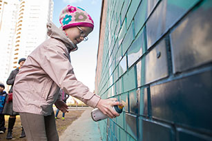 Свою лепту в ее создание внесли и участники мастер-класса, которые под руководством граффити-профессионалов продолжили серию «космических» картин. В рамках мастер-класса участники освоили разные техники граффити – от достаточно простого способа рисования спреем до более сложных: эффекта в одно движение с астра фэт и работы с прозрачными красками. Завершить стену граффити «Изумрудный космос» планируется ко Всемирному Дню защиты детей.