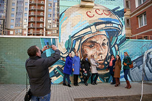 Портрет Героя Советского Союза, летчика-космонавта Юрия Гагарина стал одной из первых граффити-картин на Аллее космонавтов, а в ближайшем будущем здесь появится целая стена граффити, посвященных истории освоения космического пространства человеком.