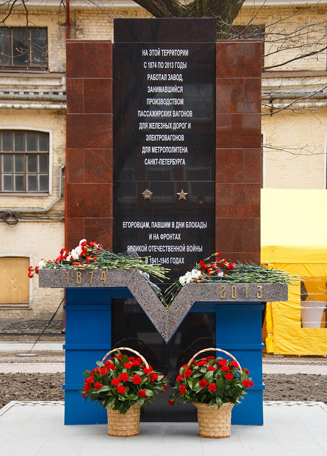 Памятник увековечил славную историю места, где с 1874 по 2013 годы работал завод им. И. Е. Егорова, и подвиг его рабочих, воевавших на фронтах Великой Отечественной войны и продолжавших трудиться в тяжелые дни блокады Ленинграда.