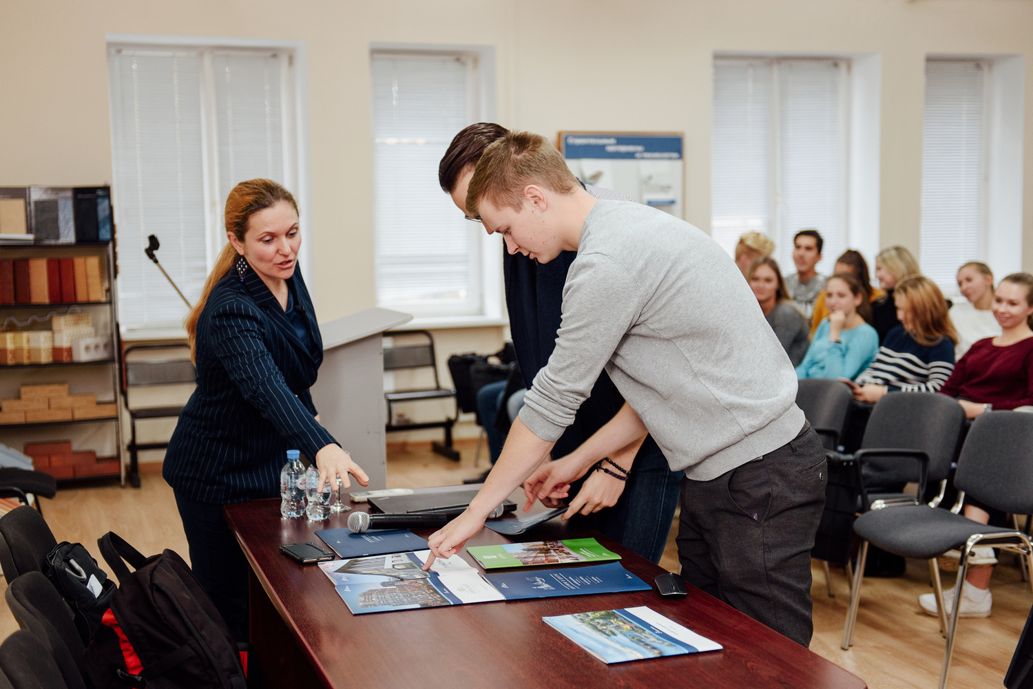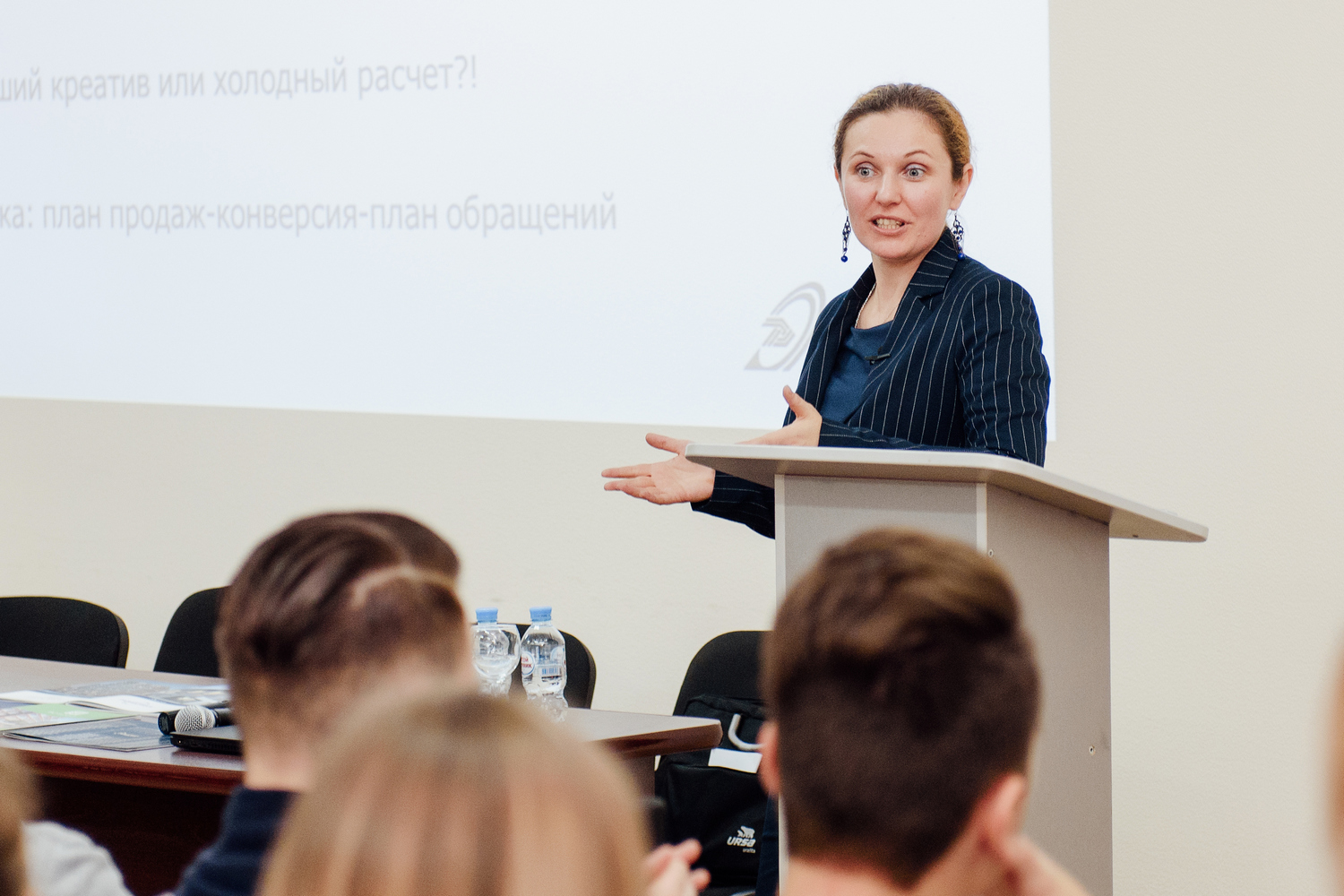 В своей лекции Майя рассказала студентам 3-го курса обо всех этапах вывода на рынок нового объекта: как формируется бюджет, как формируются рекламные кампании, что такое медиаплан, как оформляются офисы продаж. В процессе лекции студентам были продемонстрированы аудио- и видеореклама Компании, можно было ознакомиться с образцами буклетов и лифлетов. Лекция была построена на основе диалога со слушателями, каждый мог задать свой вопрос, принять активное участие в дискуссии.