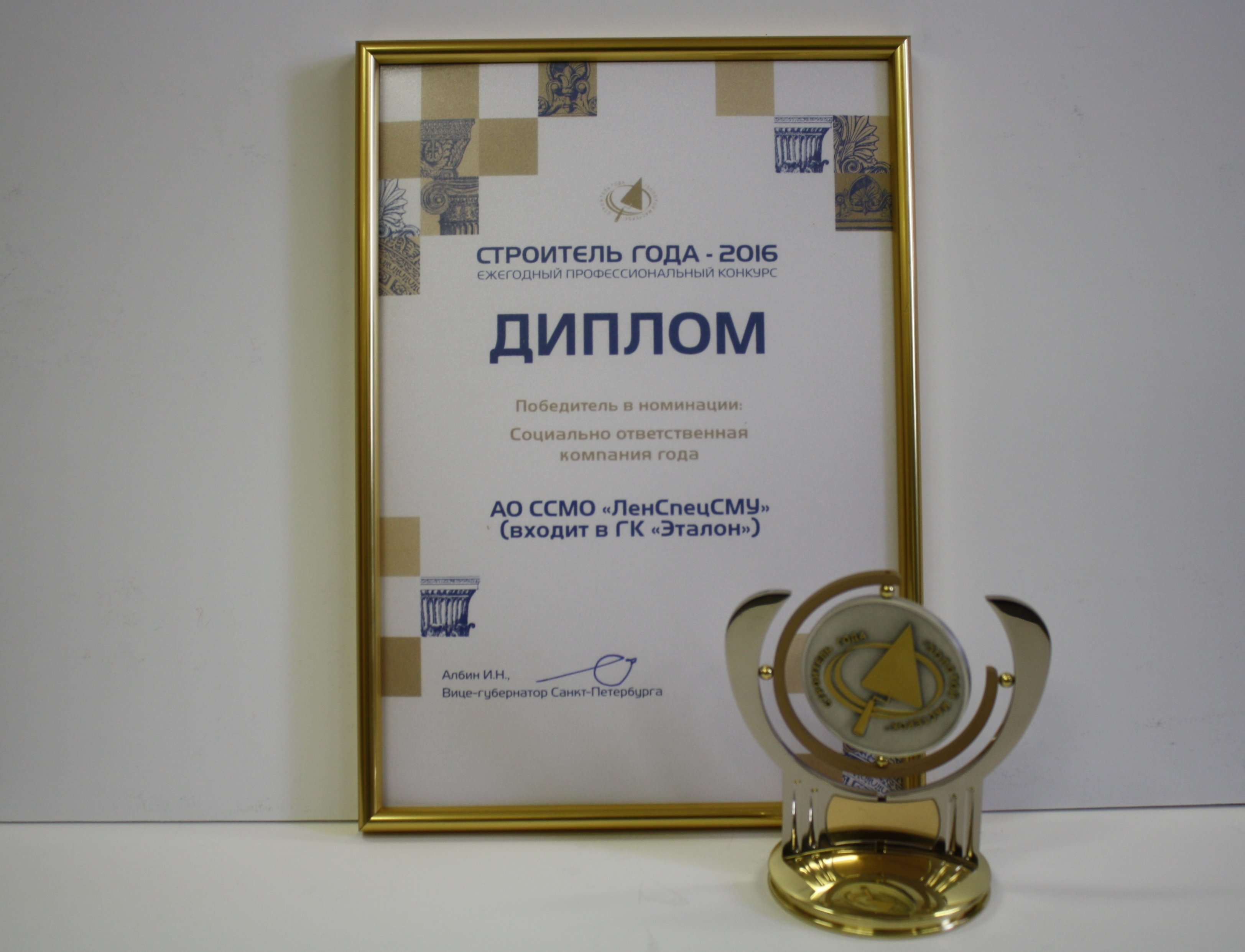 20 апреля состоялась торжественная церемония награждения победителей конкурса «Строитель года – 2016». Победителем в номинации «Социально ответственная компания года» было признано АО «Эталон ЛенСпецСМУ».