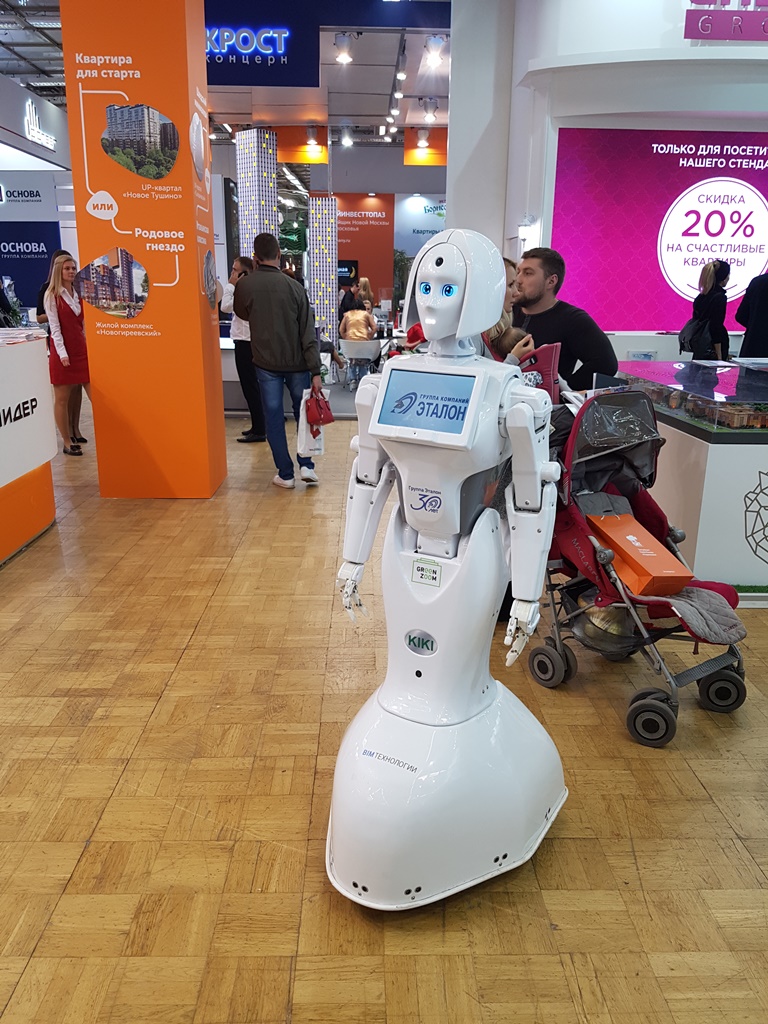 В основу дизайна стенда была заложена идея олицетворения высокотехнологического пространства для жизни в городе будущего, которое уже наступило. Продемонстрировать инновационный и прогрессивный подход Группы к строительству, например, применение BIM-технологий на протяжении всего жизненного цикла объекта, посетителям стенда помогал мобильный робот-промоутер Kiki. Дружелюбная голубоглазая андройд-красавица, обладающая отличным чувством юмора, не только приглашала пообщаться со специалистами Группы, но и подробно информировала об объектах компании. Селфи и «обнимашки» с Kiki стали обязательным ритуалом для многих посетителей выставки.