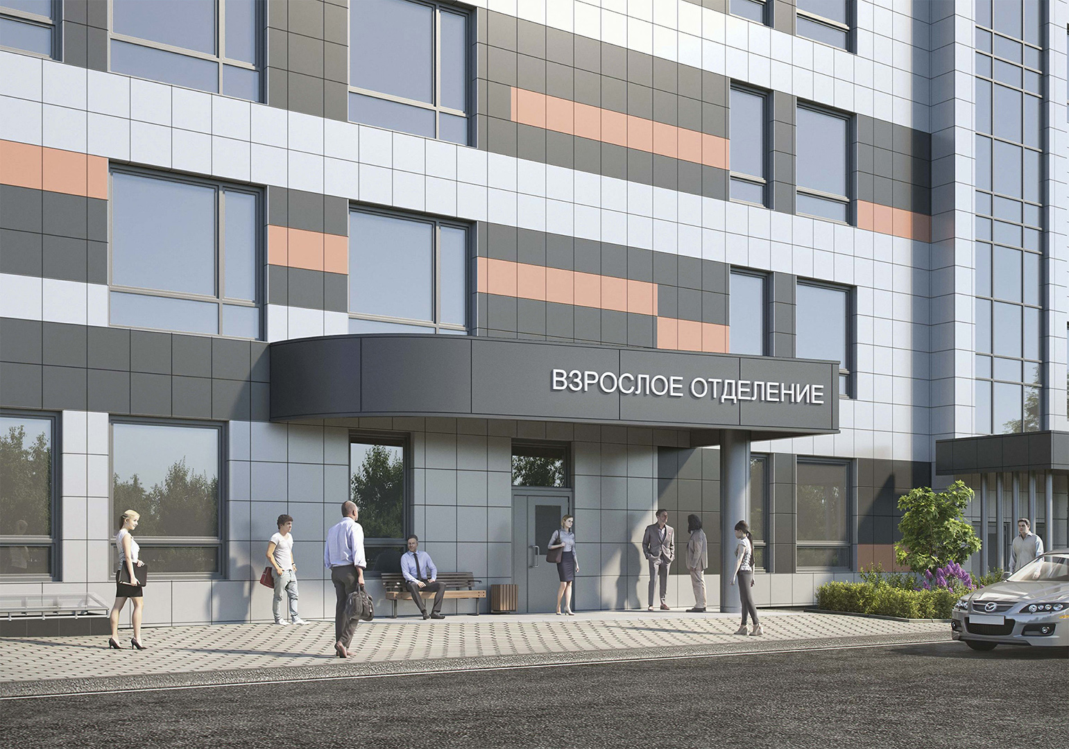 Проект медицинского центра учитывает все необходимые условия для безопасного и удобного передвижения маломобильных групп населения. Благоустройство прилегающей территории включает озеленение 1,5 тыс. кв. м участка, организацию детской площадки и открытой автостоянки на 22 на машино-места.