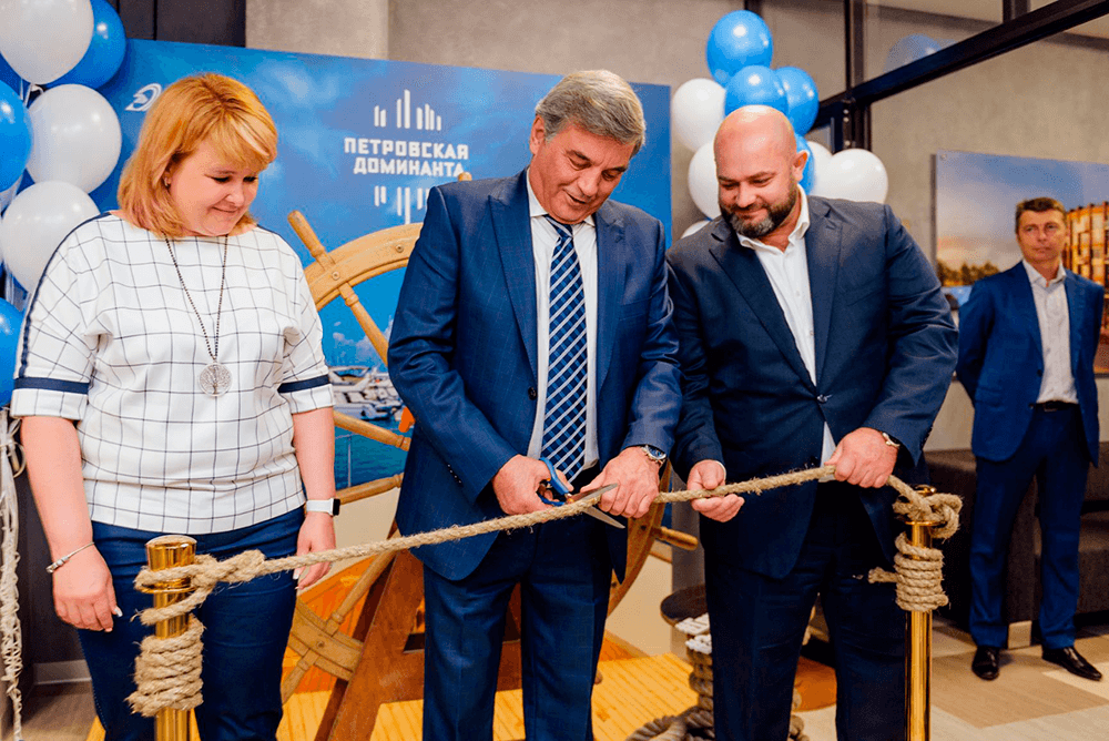 27 июня Группа «Эталон» презентовала новый интерактивный офис продаж, который открылся рядом со строительной площадкой ЖК «Петровская Доминанта» по адресу: Петровская коса, 1, к. 1 (в здании БЦ «Петровский»). На торжественном мероприятии присутствовали клиенты, партнеры и руководство Группы «Эталон».