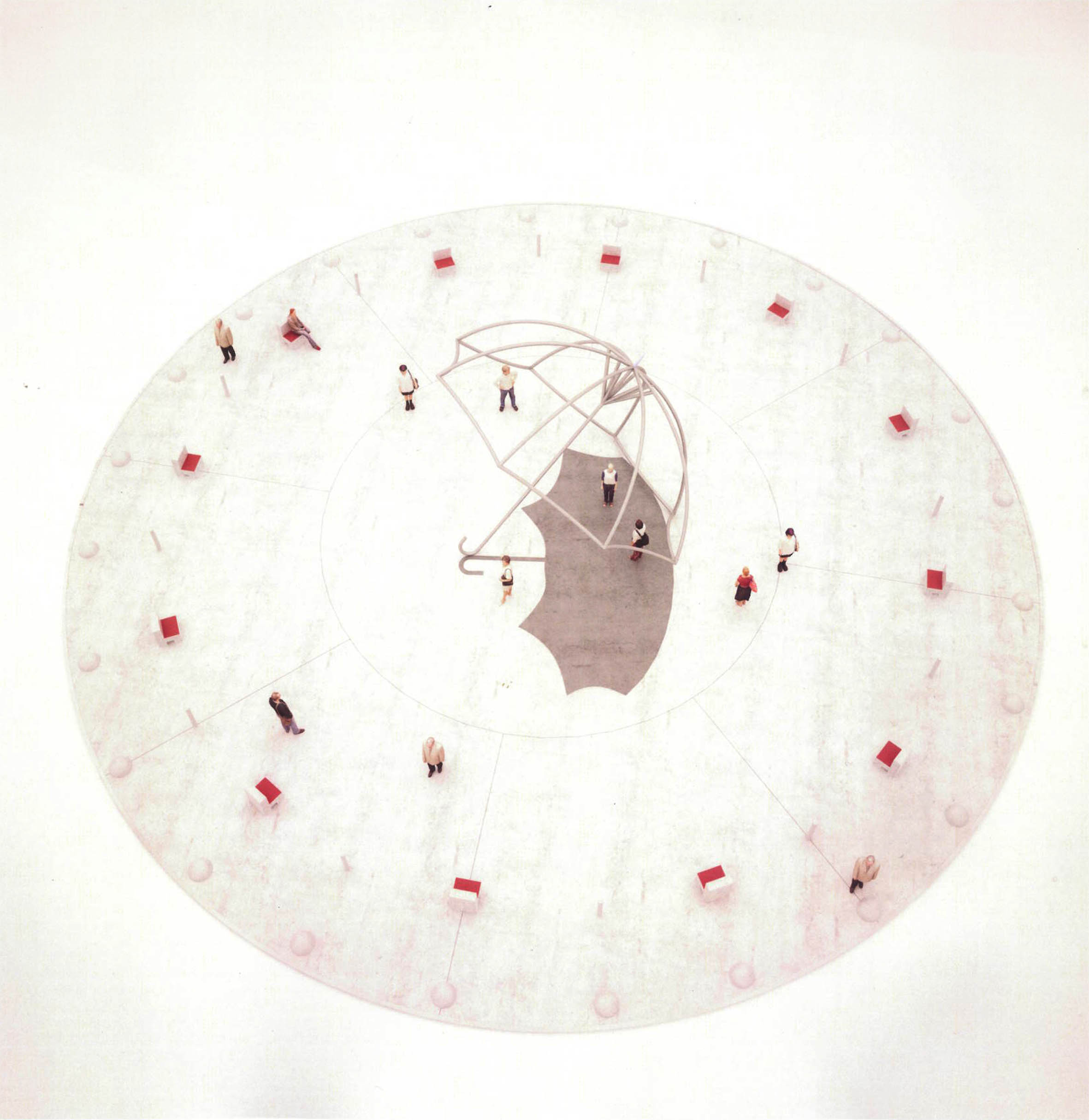 Еще одна архитектурная композиция поддержит концепцию центральной площади: установленный в гранитной плите сложенный зонт служит отсылкой к легенде о мече короля Артура и вдохновляет на новые достижения и победы.