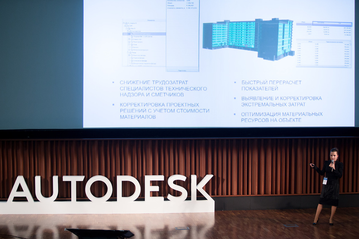 Выступление Анастасии Пулатовой на тему «Как BIM строителям помог» также было посвящено практическому применению технологии от концепции до ввода объекта в эксплуатацию. Экономическое обоснование применения BIM, по ее словам, заключается не только в том, что дает возможность избежать финансовых потерь, связанных с ошибками и недоработками, но и способствует формированию динамичной финансовой модели.