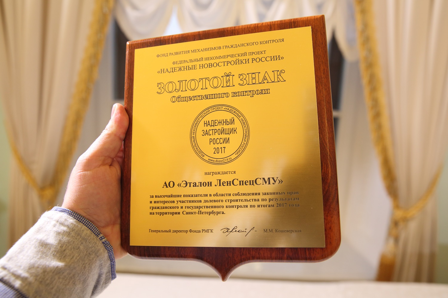 2 и 3 ноября в Правительственной резиденции Управления делами Президента России Государственном комплексе «Дворец конгрессов» в Санкт-Петербурге состоялся Всероссийский Саммит «Надежный застройщик России 2017». По итогам Саммита компания «Эталон ЛенСпецСМУ» (входит в Группу «Эталон») была отмечена в числе лучших и награждена золотым знаком «Надежный застройщик России».