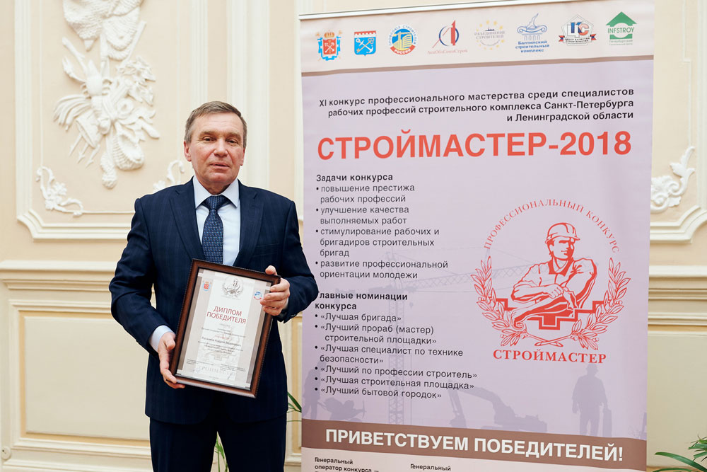15 ноября 2018 года во Дворце Труда состоялась торжественная церемония награждения победителей конкурса профессионального мастерства среди специалистов рабочих профессий строительного комплекса Санкт-Петербурга и Ленинградской области «СТРОЙМАСТЕР – 2018».