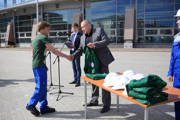 «Формирование стройотряда — возрождение этой хорошей традиции — послужит повышению престижа строительных профессий среди студенческого сообщества. И помните, что результат вашей работы можно не просто потрогать руками — он сохранится на долгие годы, и вы сможете показать его своим детям» — сказал Леонид Владимирович перед торжественным вручением специально пошитых для ребят курток с символикой стройотряда.