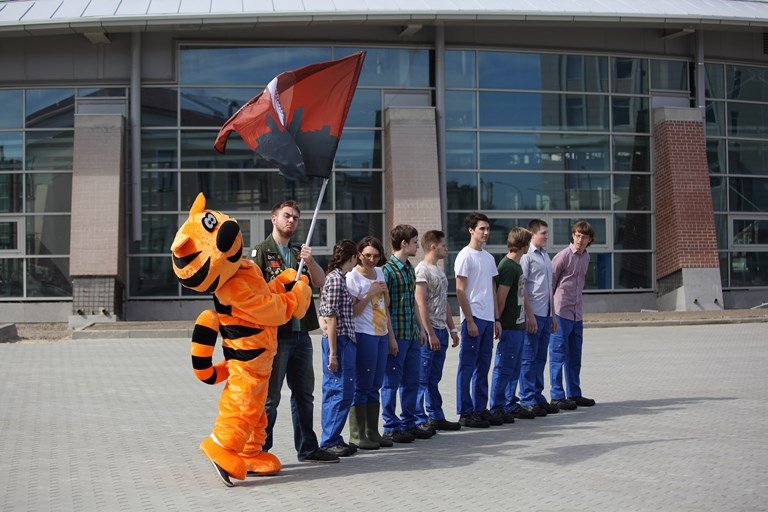 На торжественной «линейке» напутственные слова ребятам сказал начальник отдела надзора за специальными видами работ Службы госстройнадзора Виталий Пономарев: «Если вы учитесь по направлению „строительство“ — вы просто обязаны пройти все ступени этого трудного дела, начиная со стройки».
