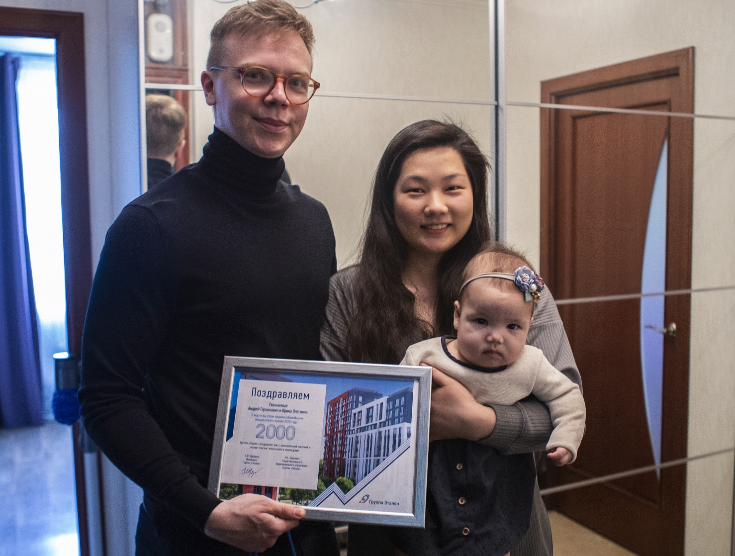 В Москве заключена очередная юбилейная сделка в проектах Группы «Эталон» – уже 2000-ая с начала 2020 года. В Компании по традиции поздравили удачливых покупателей, которыми на этот раз стали Андрей и Ирина, выбравшие для себя 2-комнатную квартиру, площадью 72 кв. м в одном из корпусов жилого острова Nagatino i-Land.