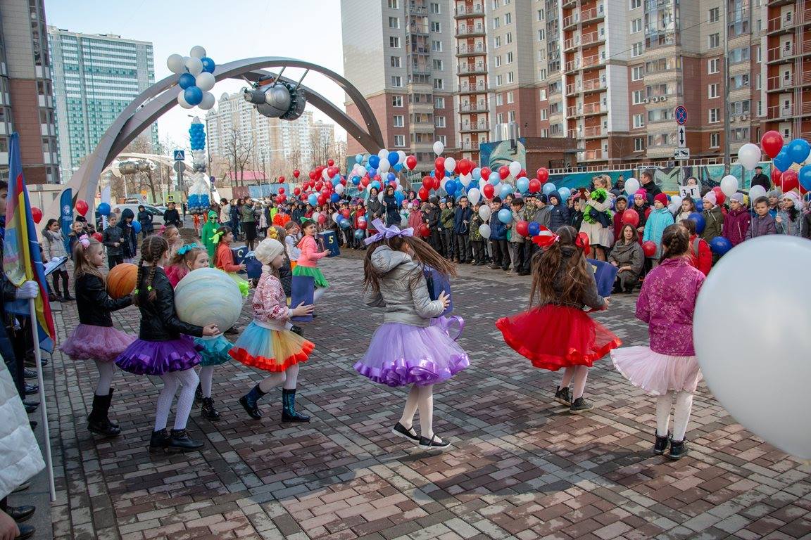 Изюминкой организованного в рамках тесного сотрудничества Группы «Эталон» и администрации школы мероприятия стала уличная акция «Подними голову вверх». Ее провели в сердце микрорайона на «Аллее Космонавтов», на которой установлены макеты трех легендарных космических кораблей – «Восток-1», «Восход-2» и «Союз». Дети читали стихи и пели песни о космонавтике. Кульминацией праздника стал запуск в небо ракеты из воздушных шаров.