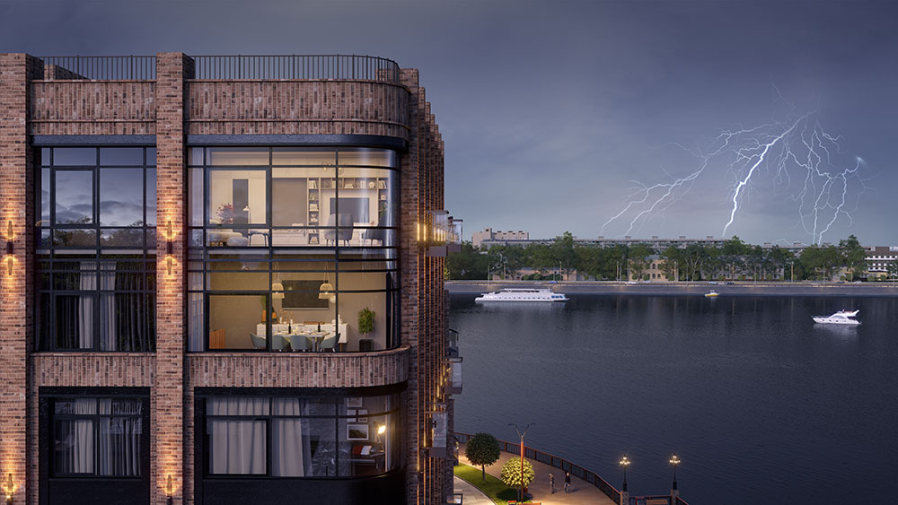 Все работы на объекте ведутся согласно утвержденному графику. В жилых корпусах «Б» и «B», расположенных у воды, начались работы по утеплению фасадов и устройству клинкерной плитки. Облицовка здания производится по технологии навесных вентилируемых фасадов, что улучшает тепловые характеристики дома. Внутри корпусов выполнена предчистовая отделка мест общего пользования. Ведется монтаж дверей спецпомещений и квартир.