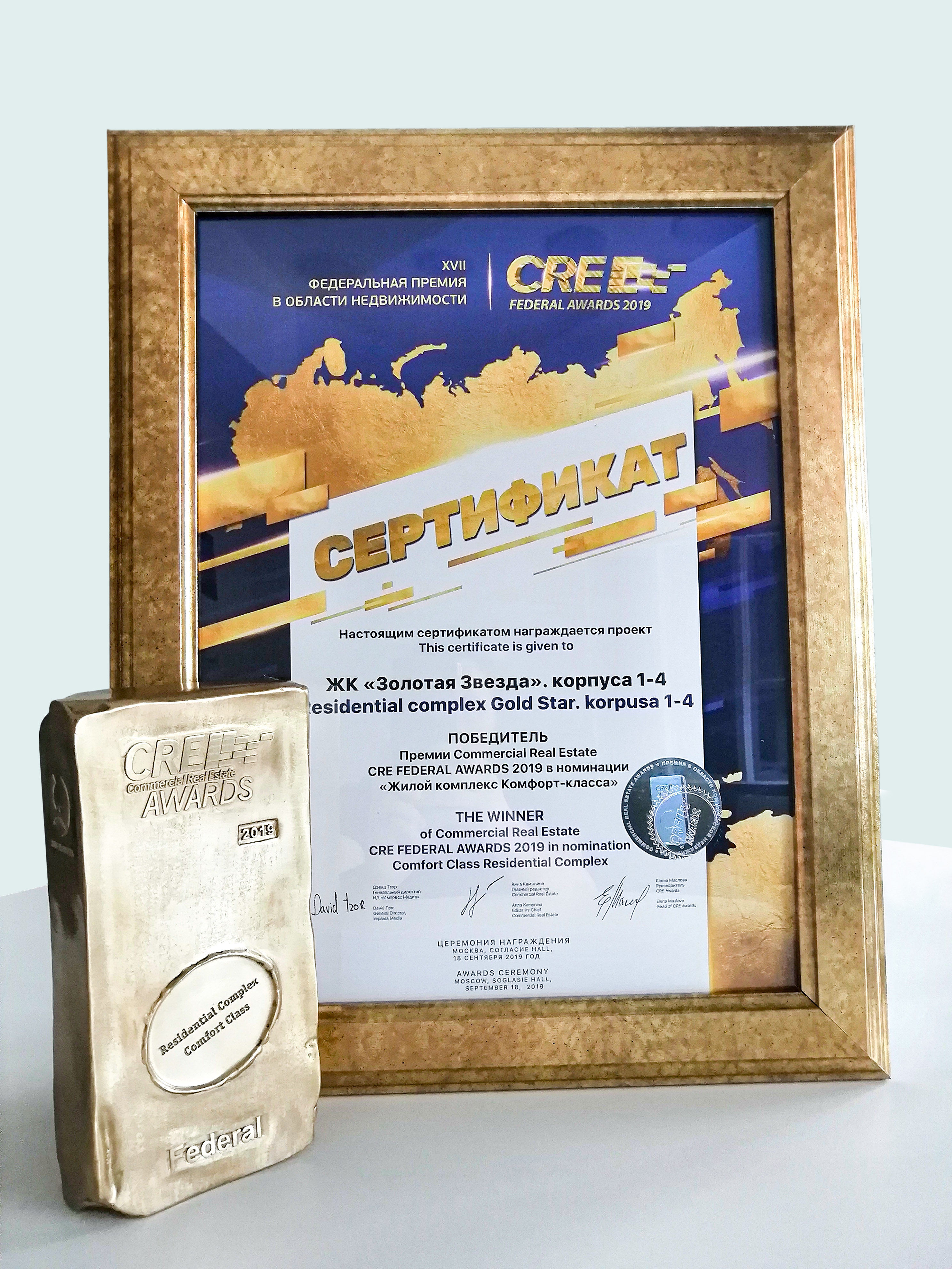 ЖК «Золотая звезда» стал лучшим в премии CRE Federal Awards 2019