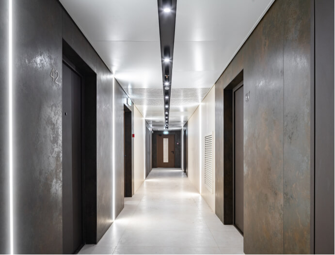 Изысканность, современность, утонченность – три ориентира, определяющих подход к интерьерам входных зон в жилом комплексе «Крылья». Просторное главное лобби с его 7-метровыми потолками добавит ощущение свободного полета, созвучного названию комплекса.
